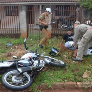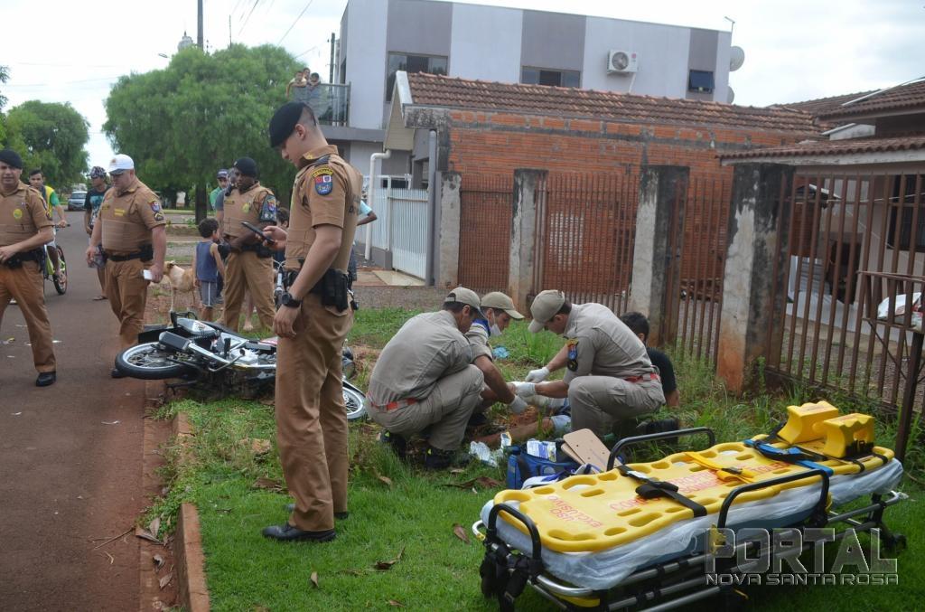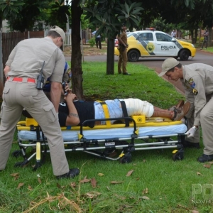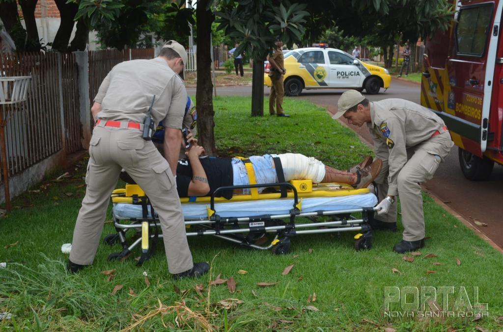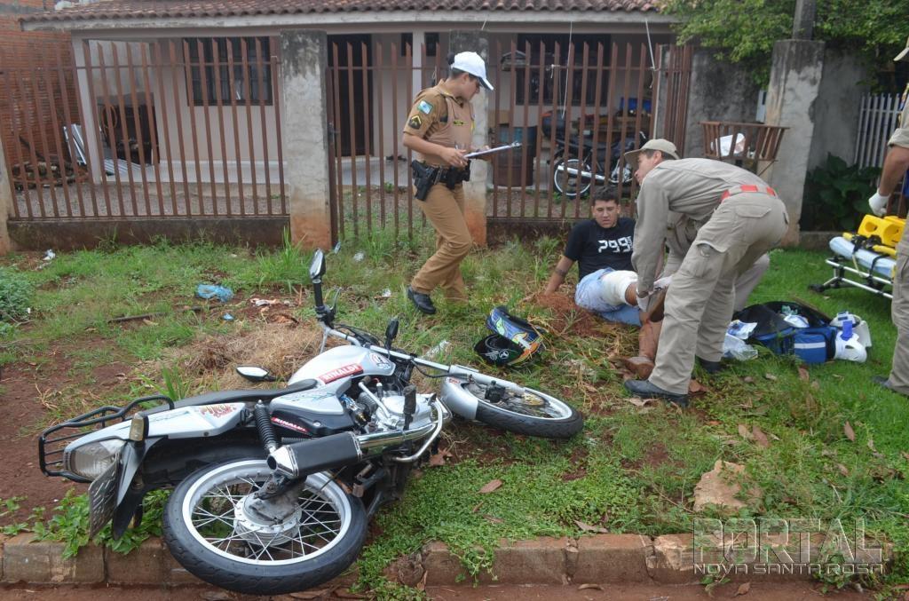 O motociclista foi socorrido pelo Corpo de Bombeiros, com duas dilaceração na perna direita, o mesmo foi conduzido à UPA.