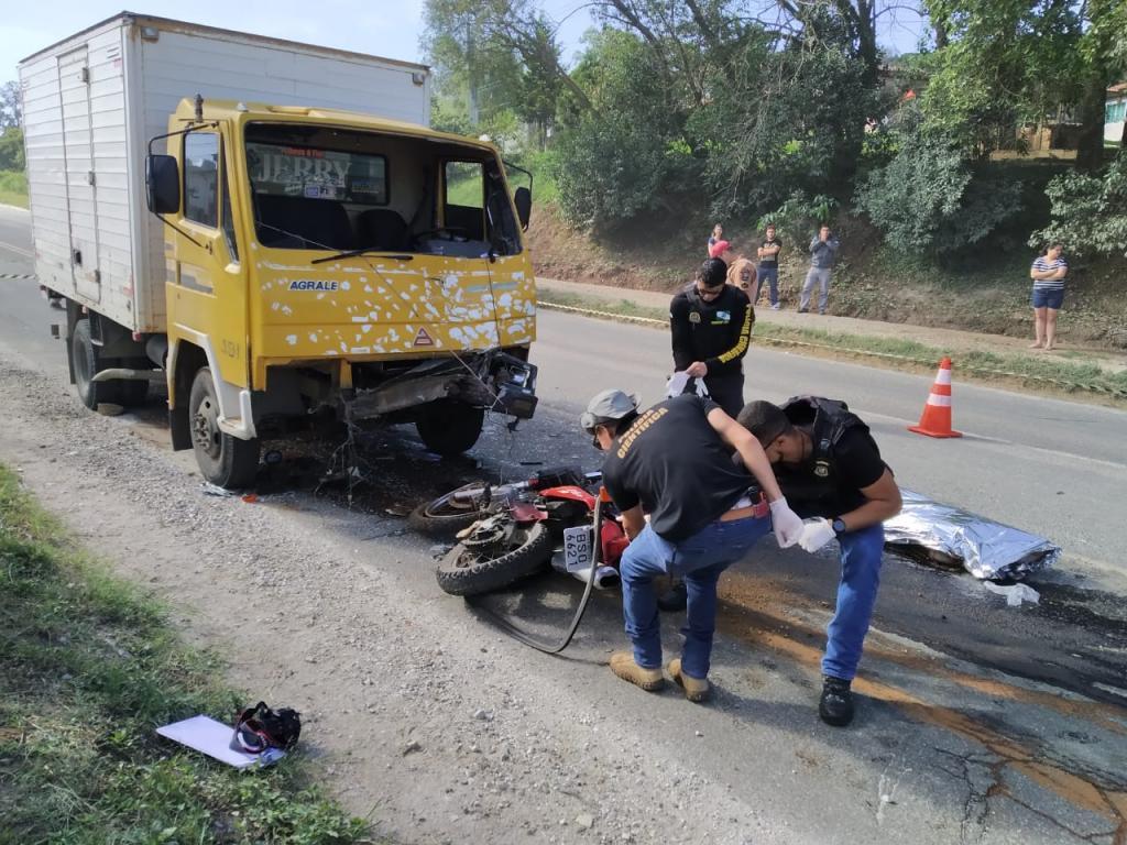 Um motociclista morreu, no começo da manhã deste sábado (7), após bater de frente contra um caminhão no quilômetro 27 da Rodovia dos Minérios, em Rio Branco do Sul, na região metropolitana de Curitiba.