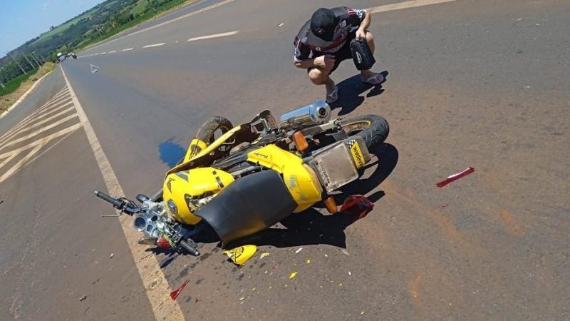 A colisão envolveu uma motocicleta Honda/CB Twister, de Mercedes, e um carro, que segundo as informações também seria da cidade. O acidente aconteceu em frente ao frigorífico da Frimesa.