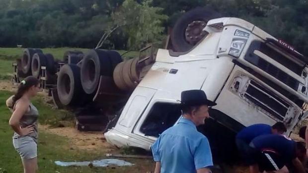 Informações de testemunhas é de que o veículo seguia com carga de soja a Santa Catarina e que o motorista, um homem de 52 anos, morador de Ampere, ao perder o controle da direção em uma curva e capotou.