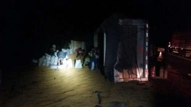 De acordo com a Polícia Rodoviária Federal (PRF), o motorista relatou que tombou o veículo devido o excesso de velocidade. A carga pesou para um lado e ele tombou o caminhão. Enquanto os motoristas saqueavam a carga, ninguém foi preso devido o número intenso de pessoas que levavam a soja.