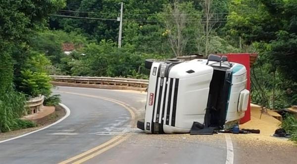 Um homem ficou gravemente ferido após o caminhão bitrem que dirigia tombar na manhã desta sexta-feira (12), na PR-487, em Luiziana. Além disso, o motorista foi atacado por um exame de abelhas logo após o acidente.
