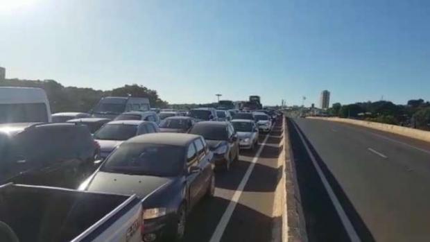 As filas de carros na Ponte Internacional da Amizade que ligam o Brasil e o Paraguai chegaram a cinco quilômetros de congestionamento na manhã desta quarta-feira (18), em Foz do Iguaçu.