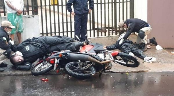 Uma batida entre duas motos deixou os dois condutores feridos, um com gravidade, na manhã desta segunda-feira (3), em Foz do Iguaçu. A batida de frente aconteceu na Rua Rui Barbosa, na Vila Maracanã, na região central da cidade.