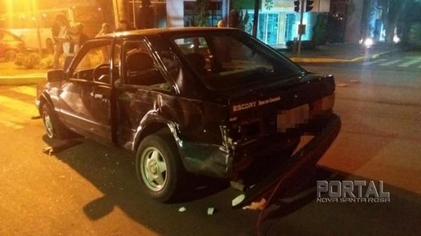 Na colisão envolveram-se um veículo Ford Escort com placas da cidade e um ônibus de trabalhadores, o acidente ocorreu na Avenida Maripá, cruzamento com a Rua Espirito Santo, no semáforo da Agência Sicredi.