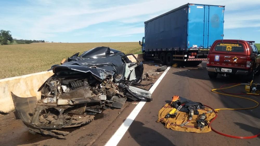 Segundo a Polícia Rodoviária Federal (PRF), o carro em que ela estava seguia no sentido Toledo, quando o caminhão invadiu a pista contrária e bateu de frente. A mulher morreu na hora.