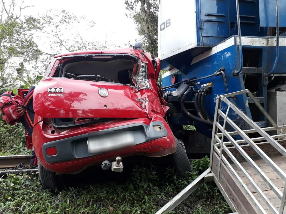 A Rumo informou que a colisão ocorreu após o automóvel parar sobre a passagem em nível no momento em que o trem se aproximava.