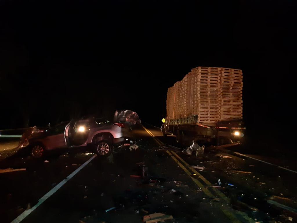 O acidente envolveu um caminhão M.BENZ/L 1418 de Nova Esperança - PR e uma FIAT/TORO RANCH AT9 D4 de Praia Grande - SP. Ambos seguiam no sentido Cascavel.