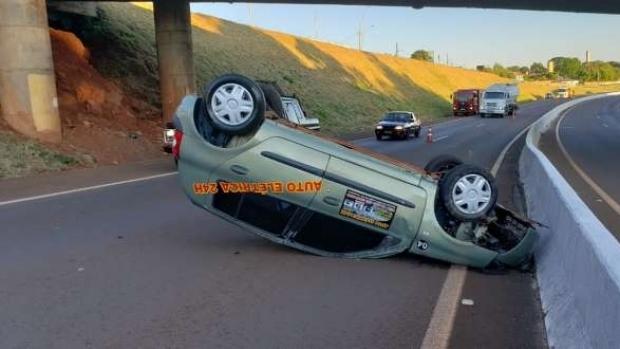 A condutora do Renault Clio ficou em estado grave em capotamento na manhã de segunda-feira (30), na BR 467, nas proximidades do viaduto da Rua Teobaldo Bresolin, no Bairro São Cristóvão, em Cascavel.