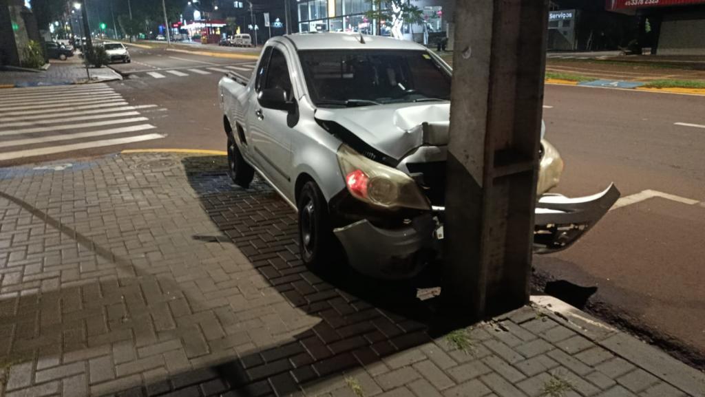 Um acidente de trânsito movimentou a noite desta quarta-feira (1º) no centro de Toledo. Uma Chevrolet Montana, conduzida por uma mulher de 45 anos, colidiu contra um poste de energia elétrica na esquina da Avenida Parigot de Souza com a Rua Pedro dos Santos Ramos.