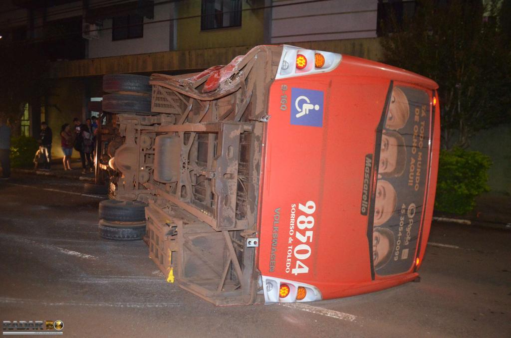 Um acidente com nove vítimas foi registrado por volta das 23h30 nesta quarta-feira (20), no cruzamento das Rua Sarandi com Rua Souza Naves, região do centro de Toledo, envolveu o Chevrolet Vectra, placas BSV 4295 de Toledo e o ônibus de transporte coletivo, da empresa Sorriso, placas BCA 2437 de Toledo. O acidente aconteceu quando o ônibus de transporte coletivo trafegava pela Rua Sarandi no sentido centro a Vila Industrial e o Vectra seguia pela Rua Souza Naves, no cruzamento aconteceu a colisão e em seguida o coletivo tombou de lado. As vítimas do ônibus e o motorista do Vectra foram socorridos pelos Bombeiros, com apoio de uma ambulância do SAMU com ferimentos leves e moderados. Todos foram levados para a UPA. Segundo a polícia, o velocímetro do Vectra travou em 100 km por hora.
