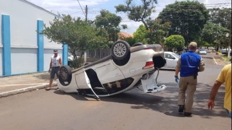 O padre Rosinei Tonietti saiu ileso de um de um grave acidente ocorrido no início da tarde da quinta-feira (15) no centro de Santo Antônio da Platina. O carro que ele dirigia, um Fiat Siena, foi atingido por uma picape GM Montana e capotou.