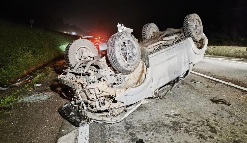 Um pai, de aproximadamente 30 anos, e o filho, de dois, morreram após um capotamento na noite desta segunda-feira (22), na BR-116, em Campina Grande do Sul, na Região Metropolitana de Curitiba (RMC). A mãe também estava no veículo e precisou ser entubada.