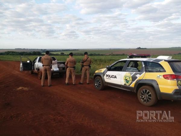 Na manhã desta segunda-feira (05), por volta das 09h00, enquanto equipe realizava ponto de bloqueio nas imediações da linha Palmital, foi avistado uma camionete Montana, placas AJP-8711, cor prata, 2004, momento em que a equipe tentou bloquear a via com a viatura para realizar a abordagem, o condutor do veículo abriu a porta e empreendeu fuga em meio à plantação de soja, próximo a uma mata ciliar, não sendo possível sua captura. O veículo estava carregado com sacos contendo inseticida de marca Trigger 750 WDG, fabricante Glymax e com caixas de cigarro, ambos produtos oriundos do Paraguai.
