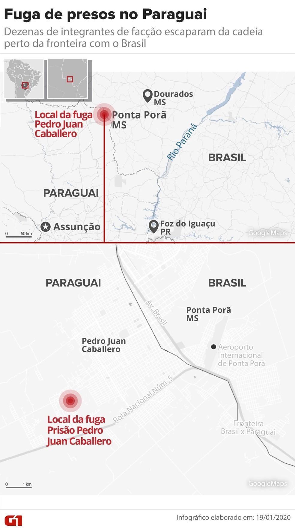 Setenta e cinco integrantes de uma facção criminosa brasileira fugiram por um túnel da Penitenciária Regional de Pedro Juan Caballero, no Paraguai, que fica na fronteira com a cidade brasileira de Ponta Porã (Mato Grosso do Sul), na madrugada deste domingo (19).