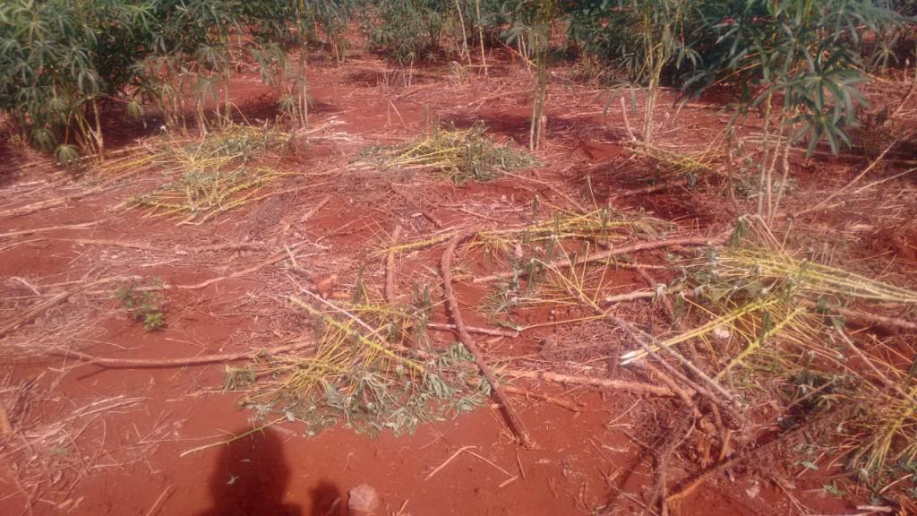 O produtor comunica que a mandioca não deve ser consumida por seres humanos, pois foi passado herbicida e é somente para consumo animal. Rastro do veículo suspeito ficaram na lavoura.