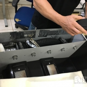 Com autorização judicial, após serem retiradas as munições da churrasqueira, por meio de ação controlada, Policiais Federais no Rio de Janeiro aguardaram o momento em que o destinatário fosse retirar a encomenda.