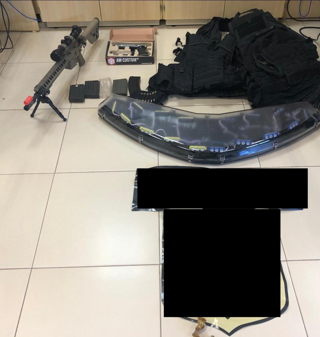 Durante a ação policial, foram apreendidos documentos, coletes balísticos, tonfas, giroflex, armas de airsoft, adesivos e uniformes utilizadas nas atividades irregulares de segurança privada.