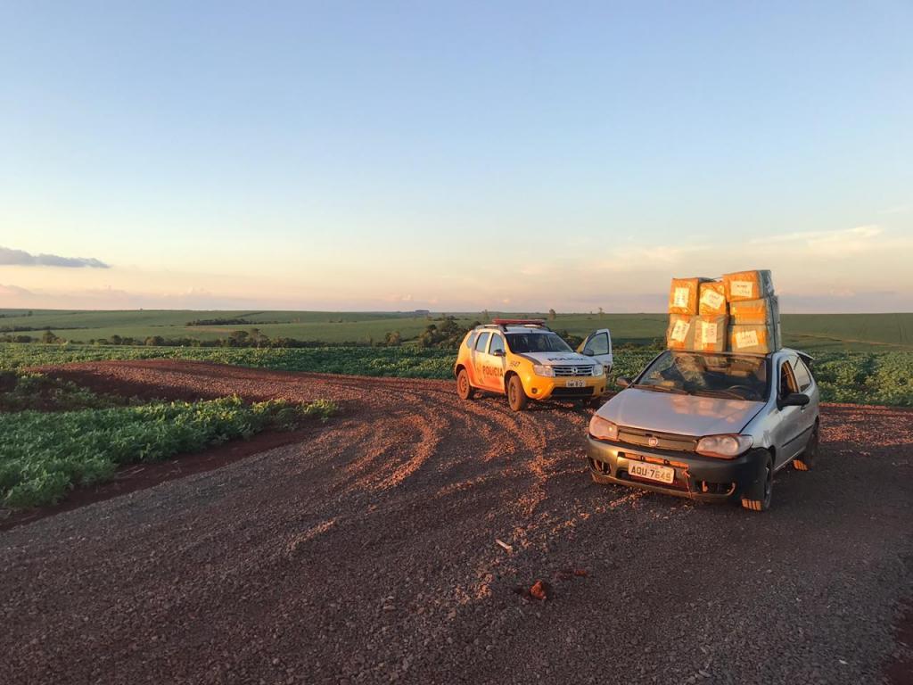 No início da noite desta quinta-feira (28), por volta das 19h00, policiais militares, em patrulhamento pela Estrada Encarnação, sentido Dr. Oliveira Castro a Salamanca, deparou com um veículo Fiat/Pálio, placas AQU-7649 de Sarandi/PR, cor prata, ano 2008, em estado de abandono.