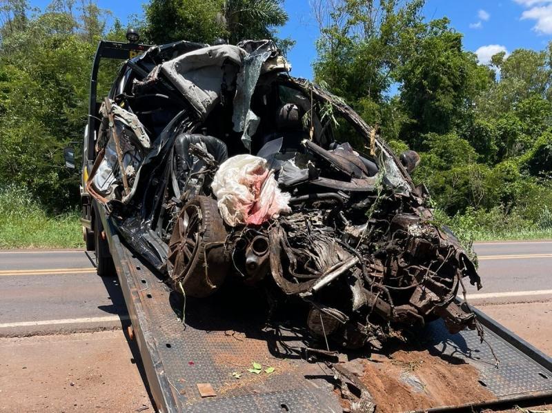 Os dois ocupantes do veículo furtado entram em óbito no local, não sendo possível identificá-los.