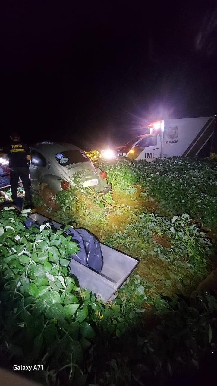 Ao chegar no endereço dos fatos, os policiais constataram que um veículo VW Fusca estava em meio a uma lavoura. O local foi sinalizado e, em conversa com a enfermeira plantão do município de Braganey, que atendia a ocorrência, esta informou que o condutor já estava em óbito.