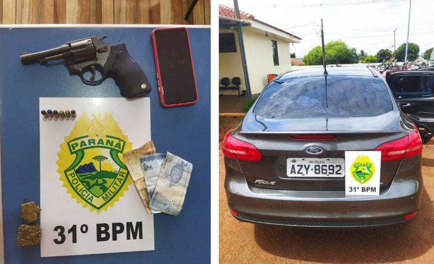 O veículo foi encaminhado à Delegacia para ser entregue aos proprietários, os objetos e as drogas foram apreendidas e os dois homens detidos.