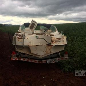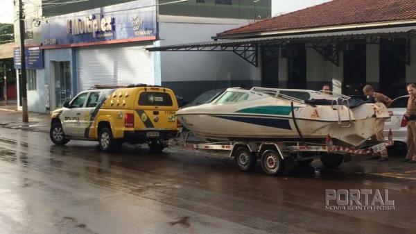 Nesta segunda-feira (29), por volta das 18h00, policiais militares do Destacamento de Pato Bragado foram informados que um reboque com uma lancha estaria encalhado em uma estrada rural próximo ao aterro, cuja mesma dá acesso ao distrito de Bom Jardim. Prontamente, a equipe policial acionou o Destacamento de Porto Mendes e após se dirigiram ao local mencionado, onde foi localizado o reboque placa BBP-3837 com uma lancha de cor branca que havia sido furtada na noite anterior no distrito de Porto Mendes.
