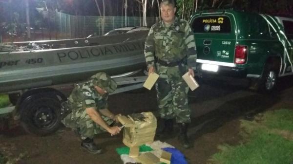 Neste domingo (28), a equipe policial ambiental em patrulhamento aquático em Foz do Iguaçu, fronteira com o Paraguai, no Rio Paraná próximo à Ilha Acaray, a cerca de 250 metros da Ponte Internacional da Amizade, avistou uma embarcação de madeira, com um volume de papelão. Após abordagem, foi verificado que o volume estava com 26 tabletes, 16,7 Kg de substância análoga a maconha.