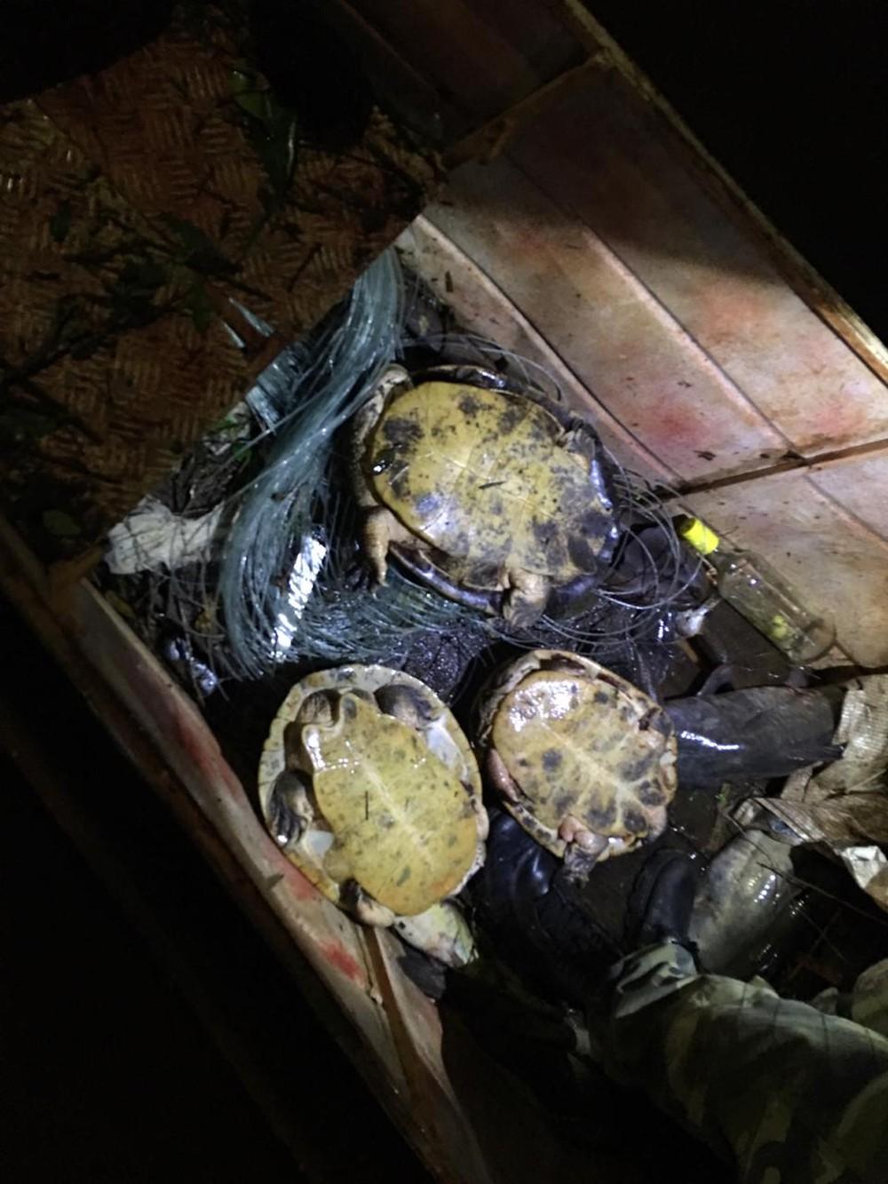 Na embarcação havia também três tartarugas que, como estavam vivas, foram devolvidas ao rio.
