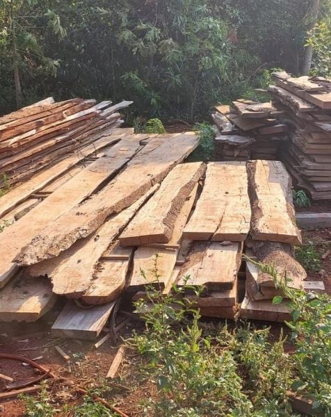 No local, os policiais encontraram 31 m³ de madeira nativa processada, incluindo espécies como angico, ipê e araucária, além de 14 m³ de toras das mesmas espécies. Uma capivara eviscerada também foi encontrada, configurando crime de caça ilegal.