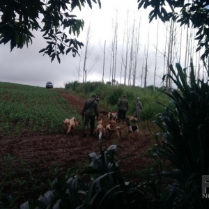 No sábado (16), uma equipe da Polícia Ambiental Força Verde durante atendimento de caça no município de Terra Roxa nas proximidades da fazenda Paulista,se deparou com 04 indivíduos e diversos cachorros de caça. Foi efetuada voz de abordagem e confirmado que 03 desses elementos estavam armados, com duas espingardas calibre 12 e uma calibre 16.