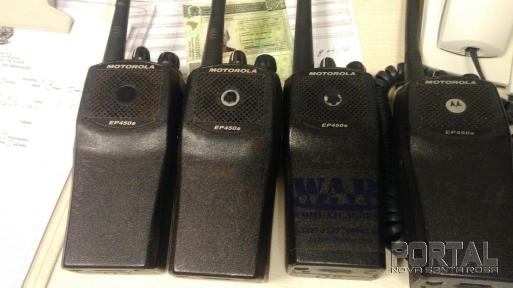 Foram apreendidas uma espingarda calibre 12, 18 munições juntamente com 04 rádios comunicadores.
