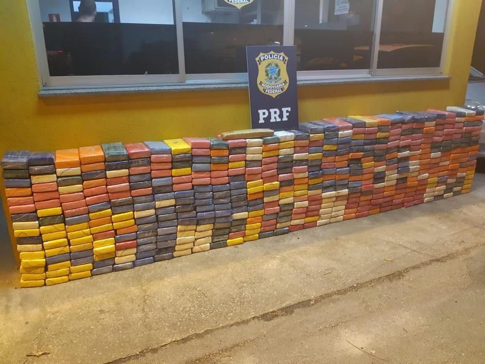 Às 19h30 deste domingo a droga ainda não havia sido toda pesada, mas de acordo com a PRF, cada tablete pesava cerca de 1 kg.