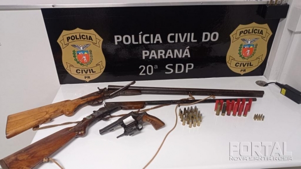 Na propriedade, o morador investigado, um homem de 67 anos de idade, mantinha irregularmente a posse de uma espingarda calibre 32 Gauge, além de outras duas armas (uma espingarda calibre 16 Gauge e um revólver calibre .38) que após averiguação na Unidade Policial tinham registro de propriedade vencidos.