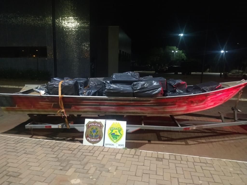 A eficiente ação da equipe policial integrada do COBRA/BPFRON, COE/BOPE e NEPOM/PF resultou na apreensão de 1 embarcação de alumínio com motor 25hp, carregada com aproximadamente 40 caixas de cigarros contrabandeados do Paraguai. Também, ensejou um prejuízo estimado de R$100.000,00 para o crime organizado.