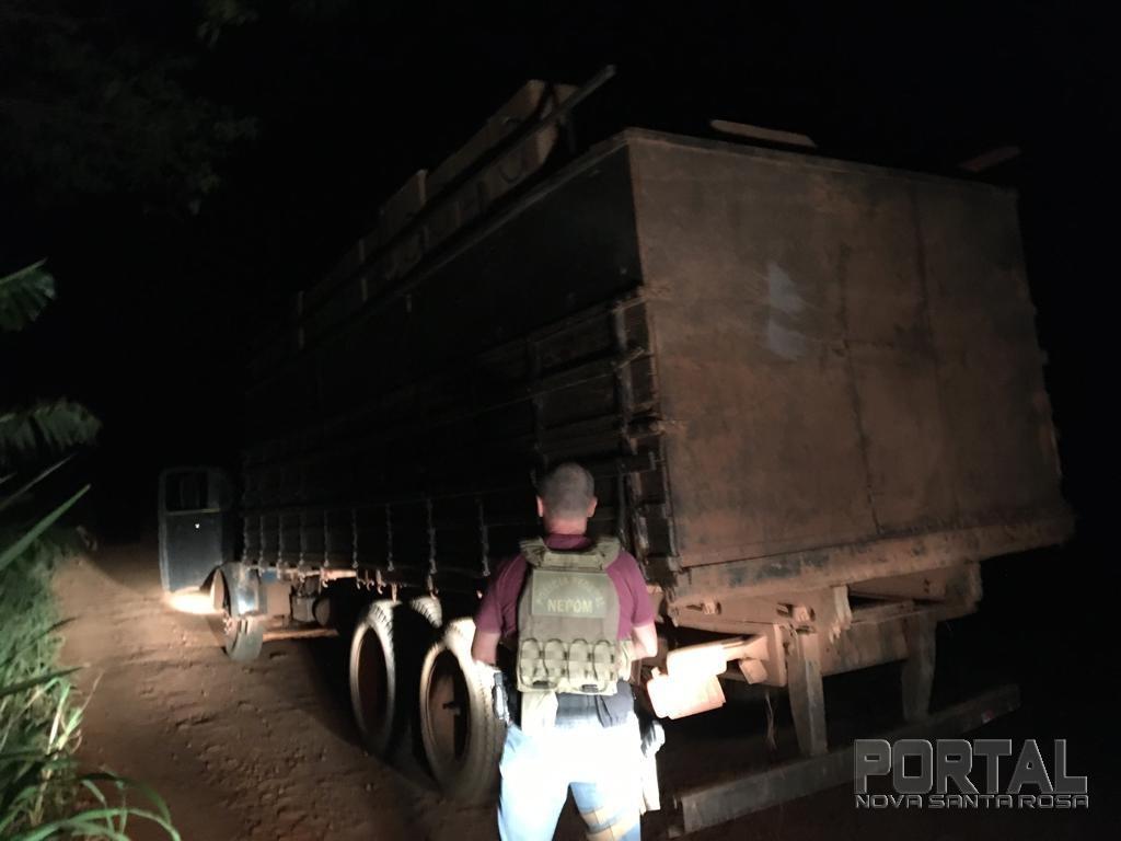 Policiais Federais visualizaram um caminhão em atitude suspeita. Foi realizada a abordagem, entretanto o motorista conseguiu fugir pela mata, não sendo localizado.