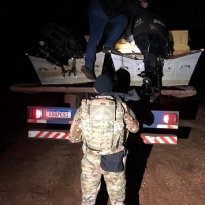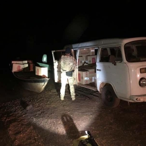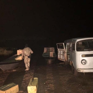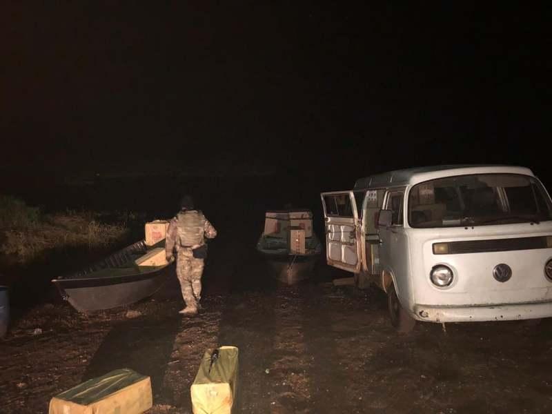 No local, foram apreendidos 02 barcos e 02 veículos carregados com aproximadamente 120 caixas de cigarros contrabandeados do Paraguai, um prejuízo de aproximadamente R$300 mil à quadrilha criminosa.