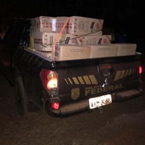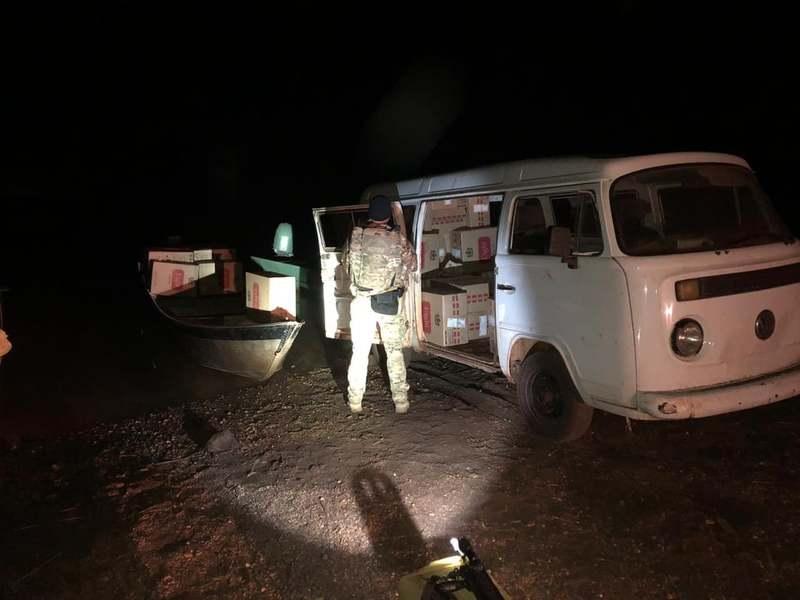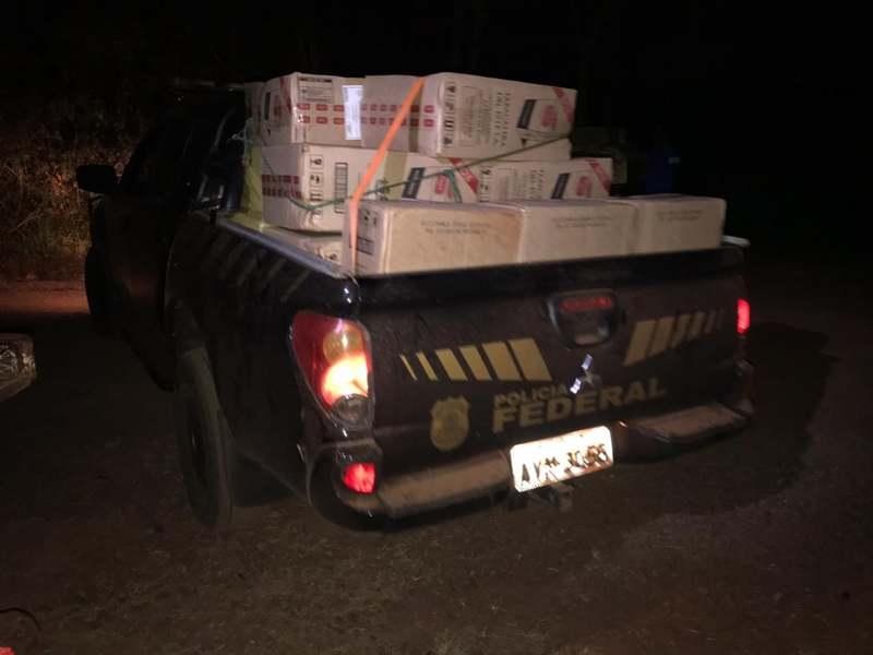 A Polícia Federal apreendeu uma Kombi, uma GM/Montana e duas embarcações carregadas com cigarros na madrugada desta quinta-feira (08) no interior de Guaíra.