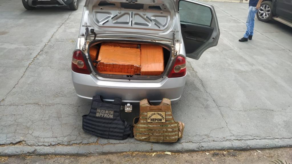 A ação policial, fruto de ação integrada entre POLÍCIA FEDERAL e BPFRON, resultou na apreensão de dois menores de idade e um veículo Ford/Fiesta carregado com 514 kg (quinhentos e quatorze quilos) de substância análoga a maconha, acarretando um prejuízo estimado em R$ 530.000,00 (quinhentos e trinta mil reais) ao crime organizado.