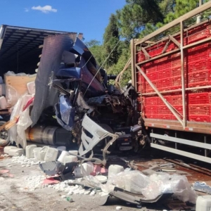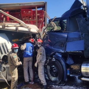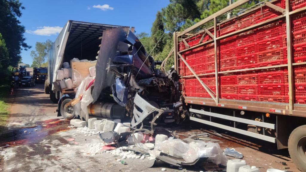 A Polícia Rodoviária Estadual liberou imagens do acidente de trânsito ocorrido na tarde desta quarta-feira por volta das 13h30 naPR 585 km 38+970, em Toledo, saída para São Pedro do Iguaçu, a colisão Traseira seguida de Colisão Frontal envolveu cinco veículos, quatro caminhões e um Gol.