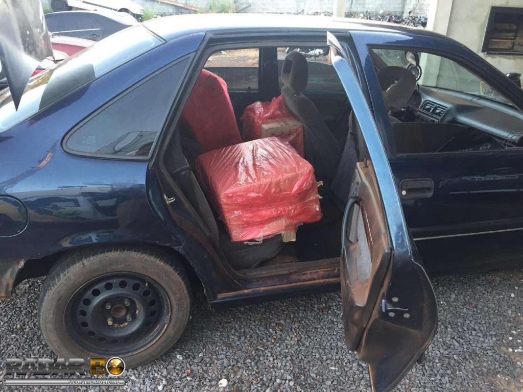 Ontem, policiais militares do Destacamento policial de Terra Roxa, durante patrulhamento na proximidade do trevo de acesso à rodovia sentido Guaíra/Iporã, área rural de Terra Roxa, avistaram um veículo suspeito, Vectra Azul, e tentaram abordá-lo, sendo que o mesmo se evadiu da equipe e tentou fugir, porém durante a fuga, colidiu com um barranco na estrada. Neste momento, foram vistos dois indivíduos saindo do veículo e tentando fugir a pé para se esconder no matagal próximo a estrada, porém um deles não conseguiu, sendo constatado pela equipe que se tratava de uma mulher, de meia idade. Durante a abordagem, foi perguntado a passageira do veículo qual material estaria no veículo e a mesma afirmou que teriam oito caixas de cigarro, de variadas marcas, todas oriundas do Paraguai. Segundo a mulher, o indivíduo que se escondeu no matagal era seu marido e conduzia o veículo, sendo que o mesmo não foi encontrado pela equipe. Diante desses fatos, a equipe encaminhou a mulher para a confecção do boletim, junto do veículo e da mercadoria apreendida, a qual posteriormente será entregue na Receita Federal.