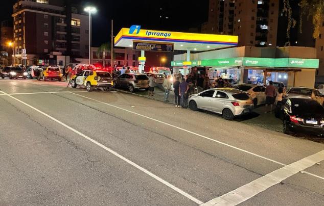 O posto de combustíveis fica na Avenida Sete de Setembro. Uma mulher foi baleada no abdome e o estado é grave. O motorista de aplicativo André Muniz Fritoli morreu na ambulância enquanto estava sendo atendido.