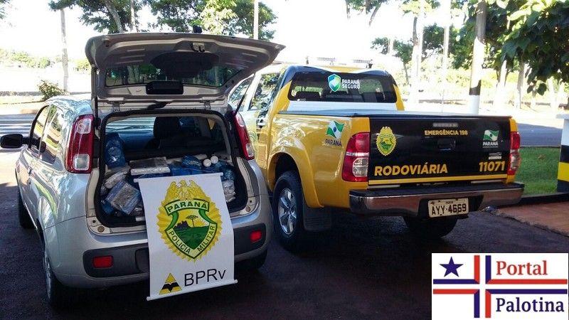 Em 22/02/2018 (quinta-feira), por volta das 7h50min policiais rodoviários abordaram em frente ao Posto Policial um veículo Fiat/Uno, cor prata, com dois ocupantes; Durante a vistoria foi constatado que o automóvel estava carregado com eletrônicos, receptores de sinal, perfumes, bebidas, dentre outros objetos, além de R$ 9.120,00 em espécie; Diante dos fatos o condutor, passageiro, veículo, mercadorias e o valor em espécie foram encaminhados para a Receita Federal de Foz do Iguaçu.