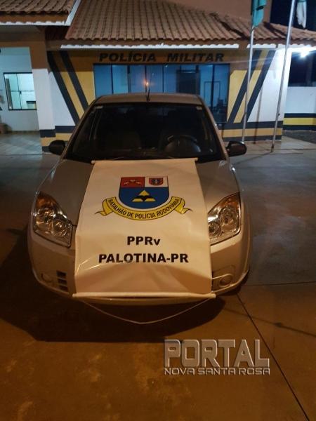 Ontem, segunda-feira, a equipe de serviço da 3ª Cia BPRv Palotina em operação na rodovia PR 364, Palotina, deu ordem de parada a um veículo Ford/Fiesta, onde seu condutor não obedeceu a ordem vindo a empreender fuga. De imediato foi realizado acompanhamento tático, sendo que após alguns quilômetros o condutor parou o veículo e disse que o veículo é produto de roubo, foi verificado que o veículo foi roubado no dia 02 de fevereiro na cidade de Goioerê. O veículo encontrava-se com duas placas diferentes. O veículo e o preso foram encaminhados a Delegacia de Polícia Civil de Palotina para medidas cabíveis.