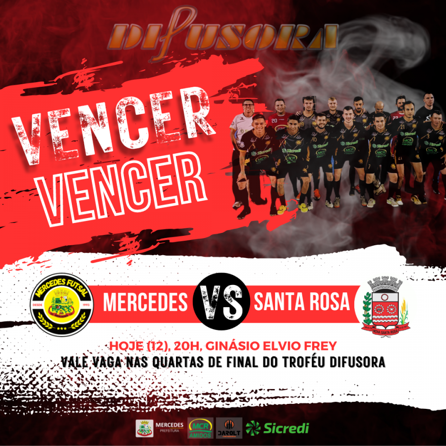 A seleção Mercedes Futsal/Sicredi/MCR Amidos tem um duelo decisivo na noite desta segunda-feira (12) para avançar às quartas de final do Troféu Difusora. Só a vitória interessa ao time mercedense. O jogo é contra Nova Santa Rosa, às 20h, no Ginásio Elvio Frey.