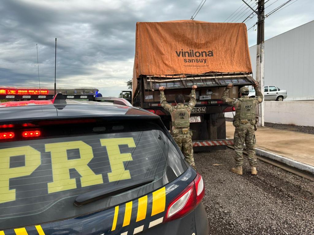 A Polícia Rodoviária Federal apreendeu no dia de hoje (22) um caminhão carregado com aproximadamente 300 mil maços de cigarros contrabandeados. A carga é avaliada em 1,5 milhões de reais. A abordagem ocorreu no município de Campo Mourão, na BR 487.