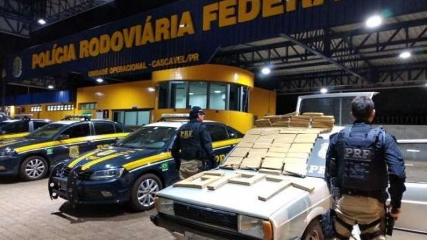 A Polícia Rodoviária Federal apreendeu 50,6 quilos de maconha na madrugada deste sábado (7) em Cascavel, na região oeste do Paraná.