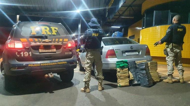 Logo depois, cerca de 20 horas, PRFs abordaram um homem de 55 anos, que conduzia um VW Bora na BR-163, em Guaíra (PR). Na vistoria, encontraram 114,5 quilos de maconha. Veja o vídeo aqui.