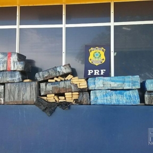 Na carroceria do veículo, a equipe policial encontrou, dentro de caixas, 304,605 kg de substâncias análoga à maconha, dividida em vários tabletes.