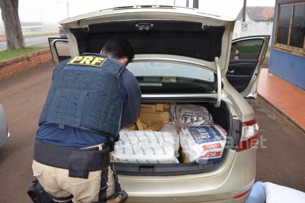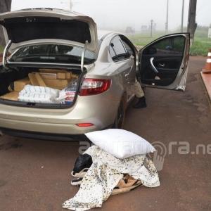 Os policiais abordaram dois veículos em atitude suspeita, um Fluence com placa de Rio das Ostras-RJ e um Palio placa de Porto Alegre-RS, e após verificação da documentação, que está lícita, foi revistado o interior do veículo e no porta malas de um deles foi localizada grande quantia de drogas, que totalizou 202 kg. O outro veículo atuava como batedor.